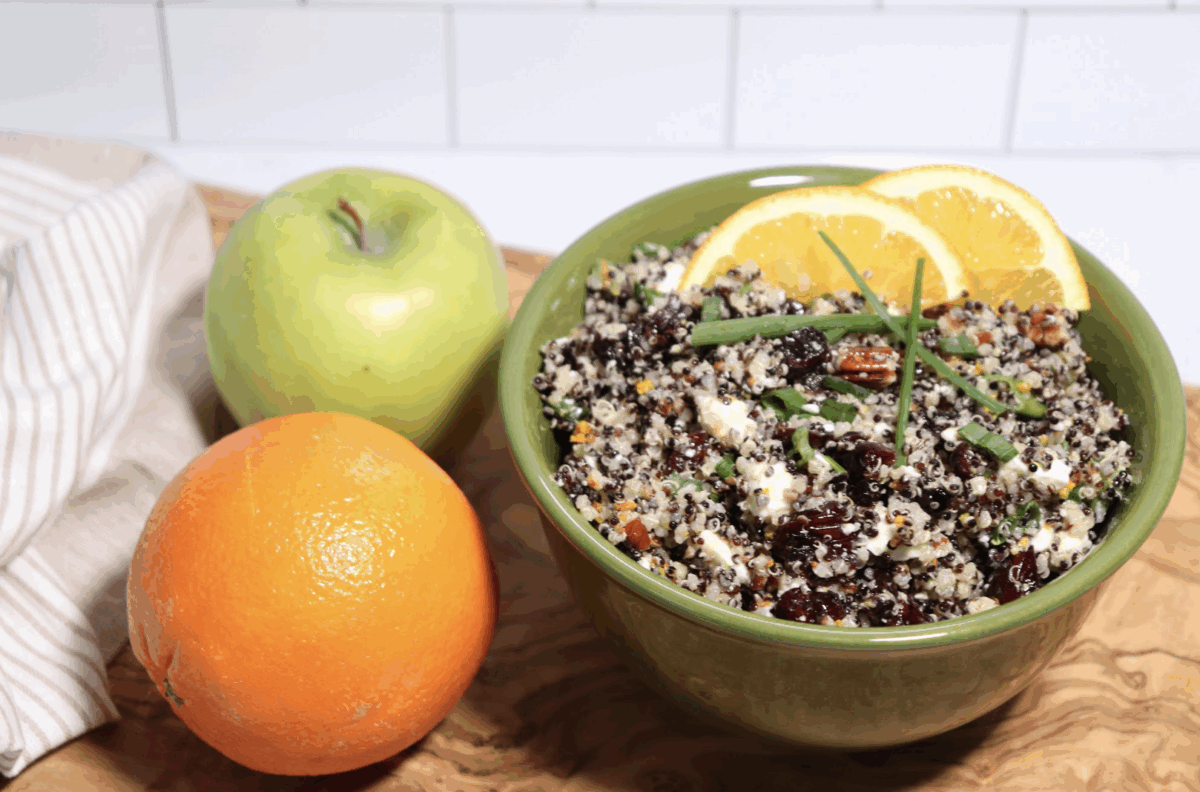 Naturally nutritious: Protein-rich quinoa, heart-healthy nuts, and fruit add-in.