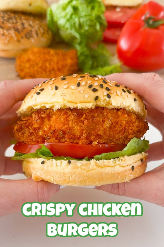 The most delicious homemade crispy chicken burgers. Made with a cornflake coating for extra crunch and oven baked to keep them super healthy.
