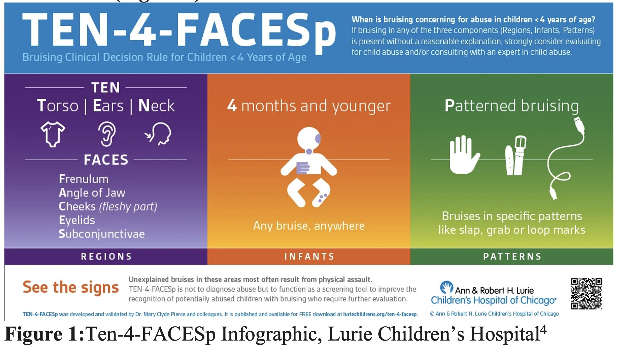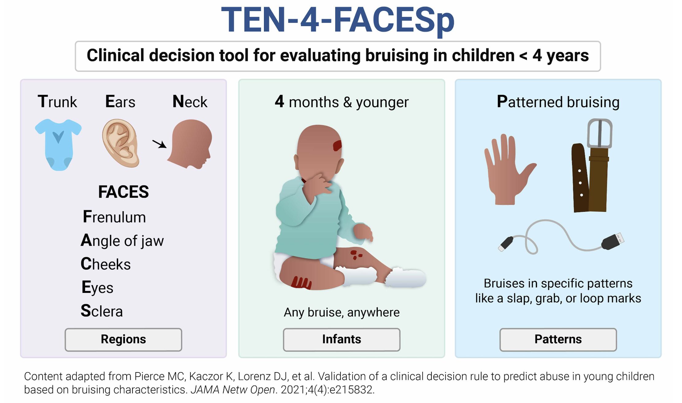 - Consider Ten-4-FACESp for bruising in children <4 years of age concerning for NAT (Figure 1)