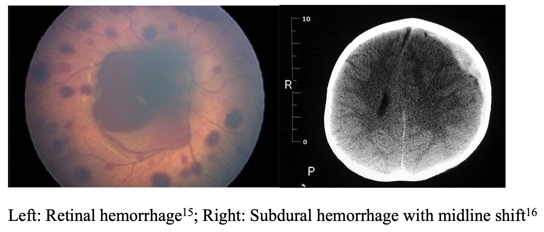 - Formerly known as “Shaken Baby Syndrome” – shearing forces lead to retinal hemorrhage/intracranial hemorrhage.