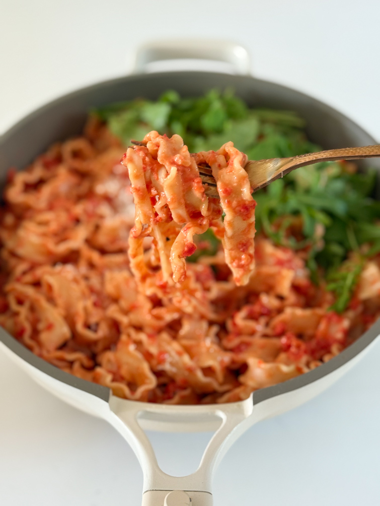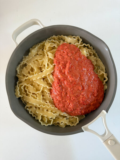 - Add the sauce to cooked pasta and heat for 15-20 seconds to warm through.