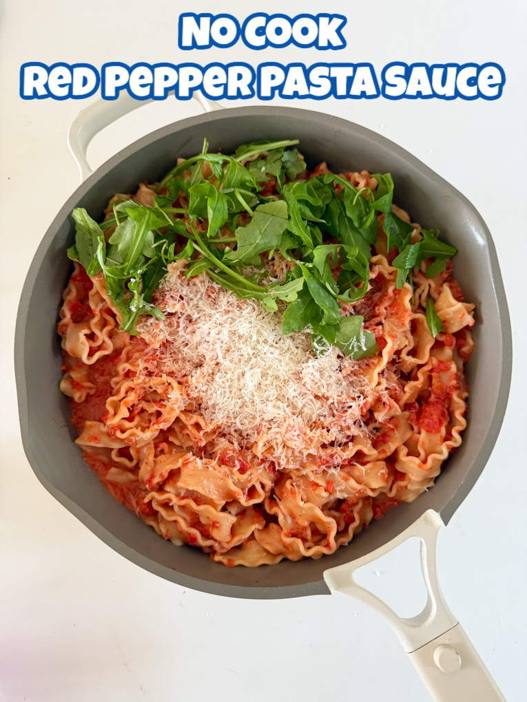 The easiest ever pasta sauce that requires no cooking. Whip it up whilst the pasta is boiling for a speedy mid week dinner.